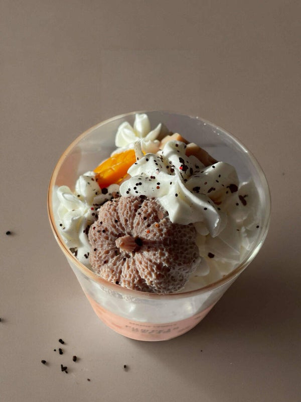 Notes of velvety pumpkin purée unfold into a creamy heart of slow-whipped vanilla, wrapped in the golden glow of drizzled honey.