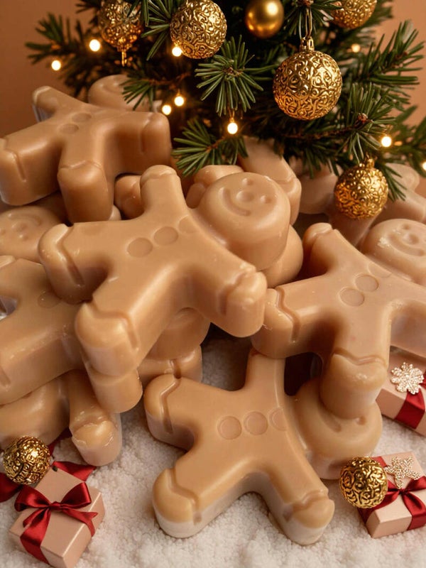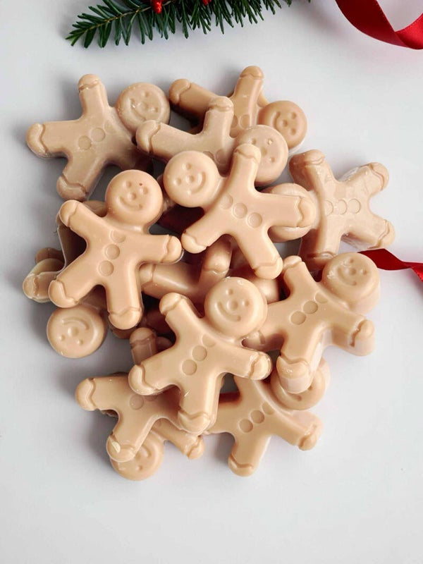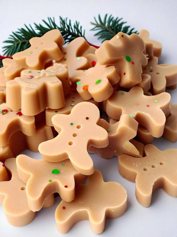 These soy wax melts blend the classic, spicy scent of freshly baked gingerbread men with sweet, buttery sugar cookies, creating a cozy, festive atmosphere.