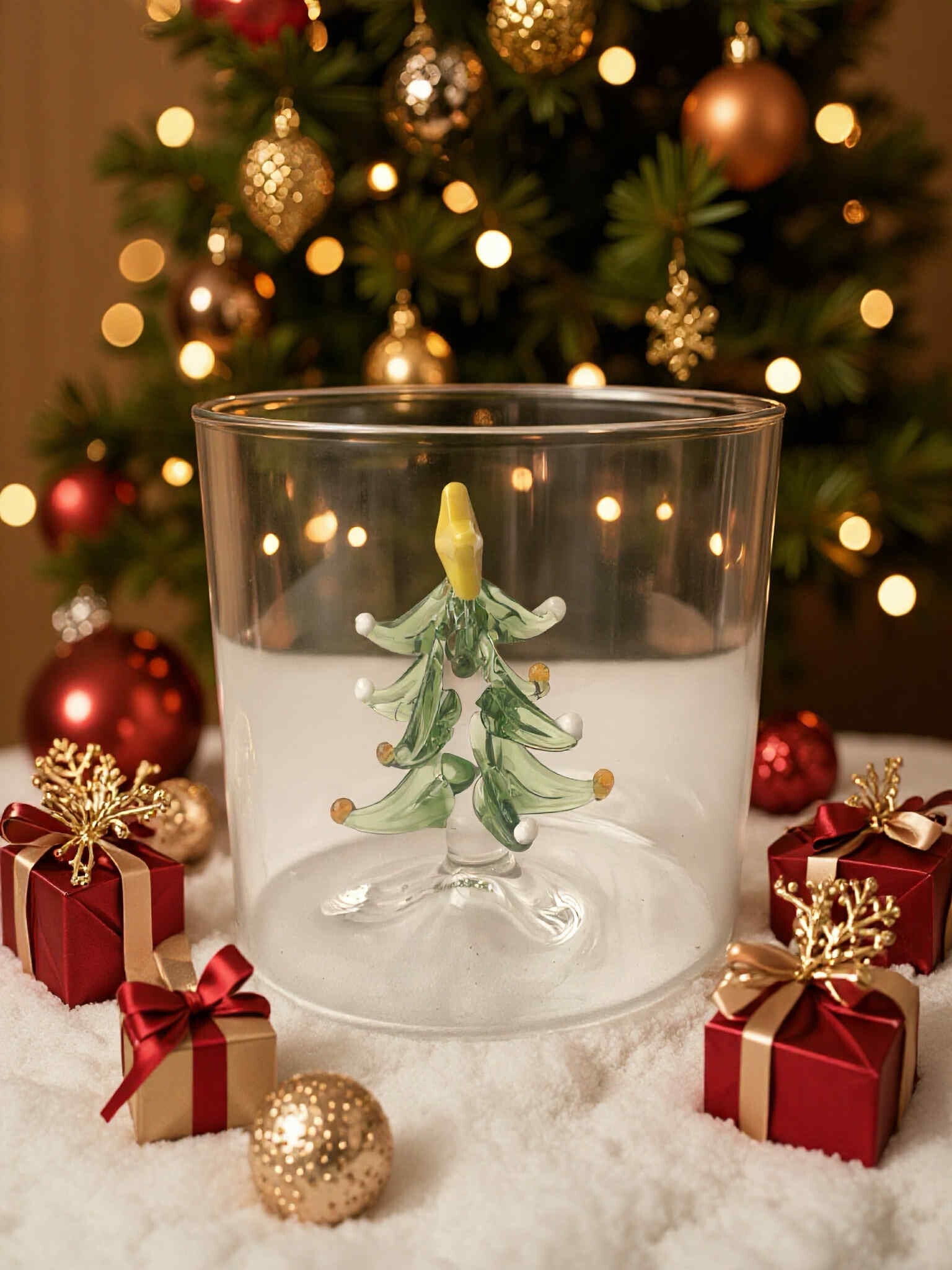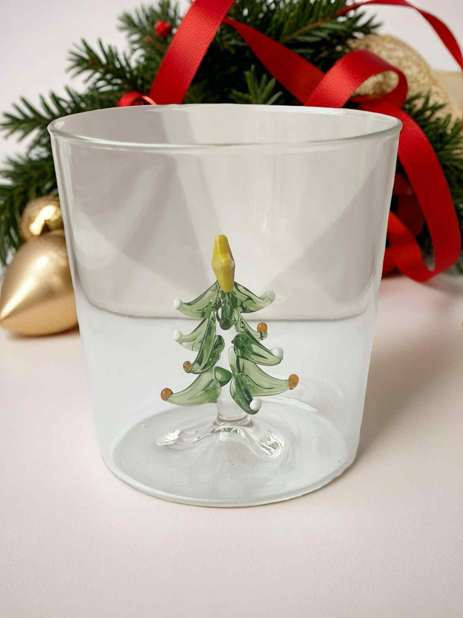 Add a touch of festive charm to your table with this elegant Christmas glass, beautifully adorned with a shimmering Christmas tree design.