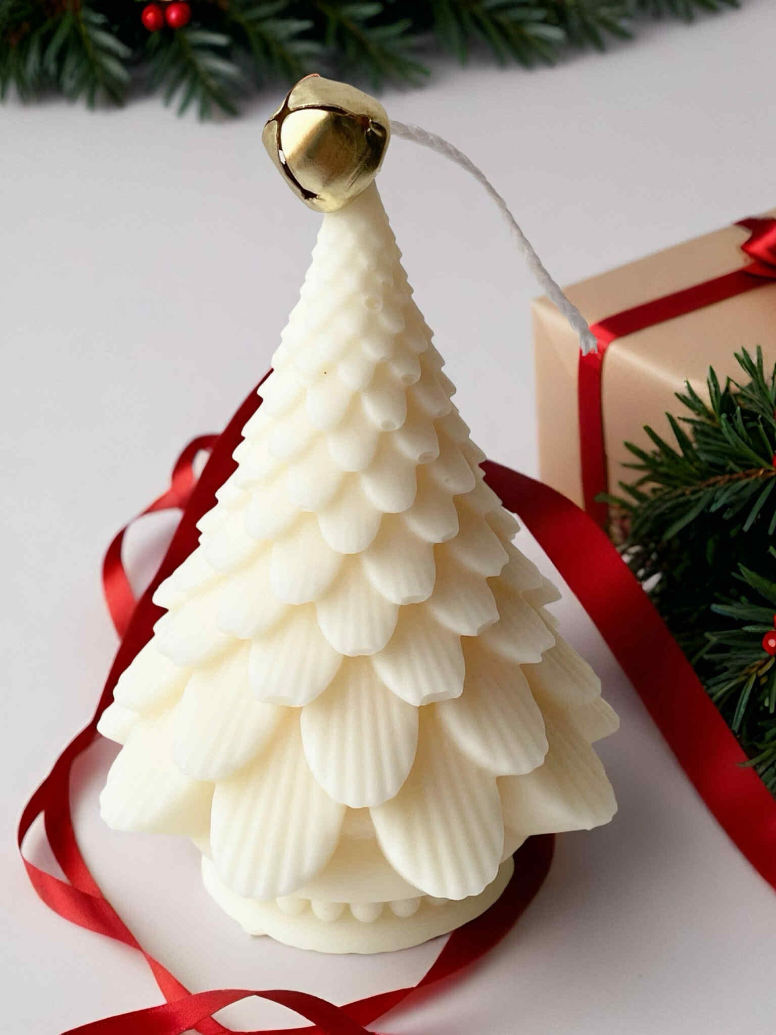 Shaped like a pine‑cone patterned Christmas tree, this piece is made from 100% soy wax and comes unscented—perfect if you prefer a clean, fragrance‑free ambience.