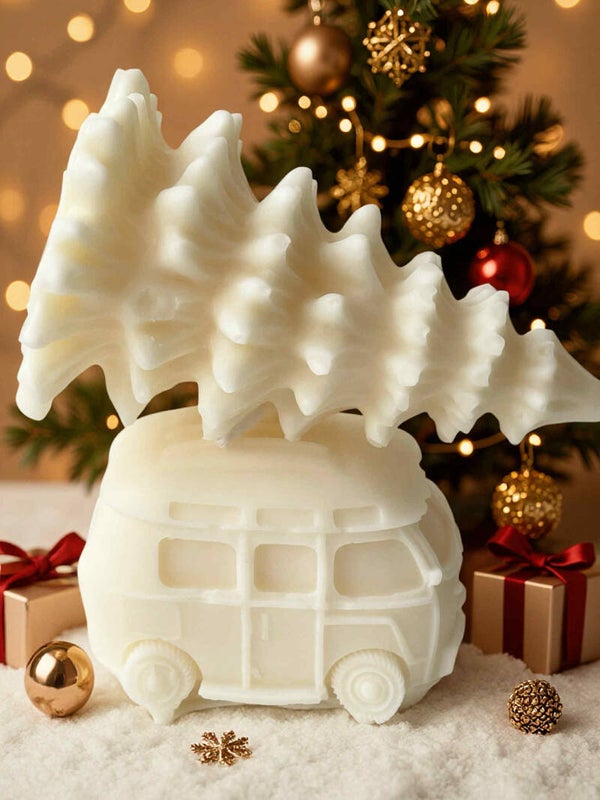 Each candle is hand-poured and designed with intricate detail — featuring a festive Christmas tree paired with a charming little car, evoking the warmth and nostalgia of the holiday season.