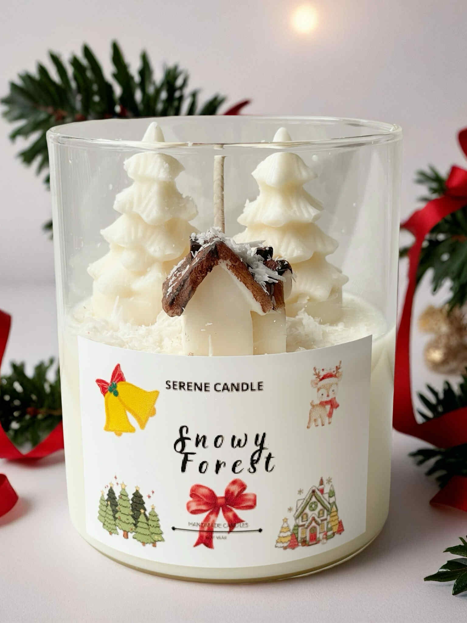 Step into a winter woodland wonder with this hand-poured candle that brings holiday magic to life.