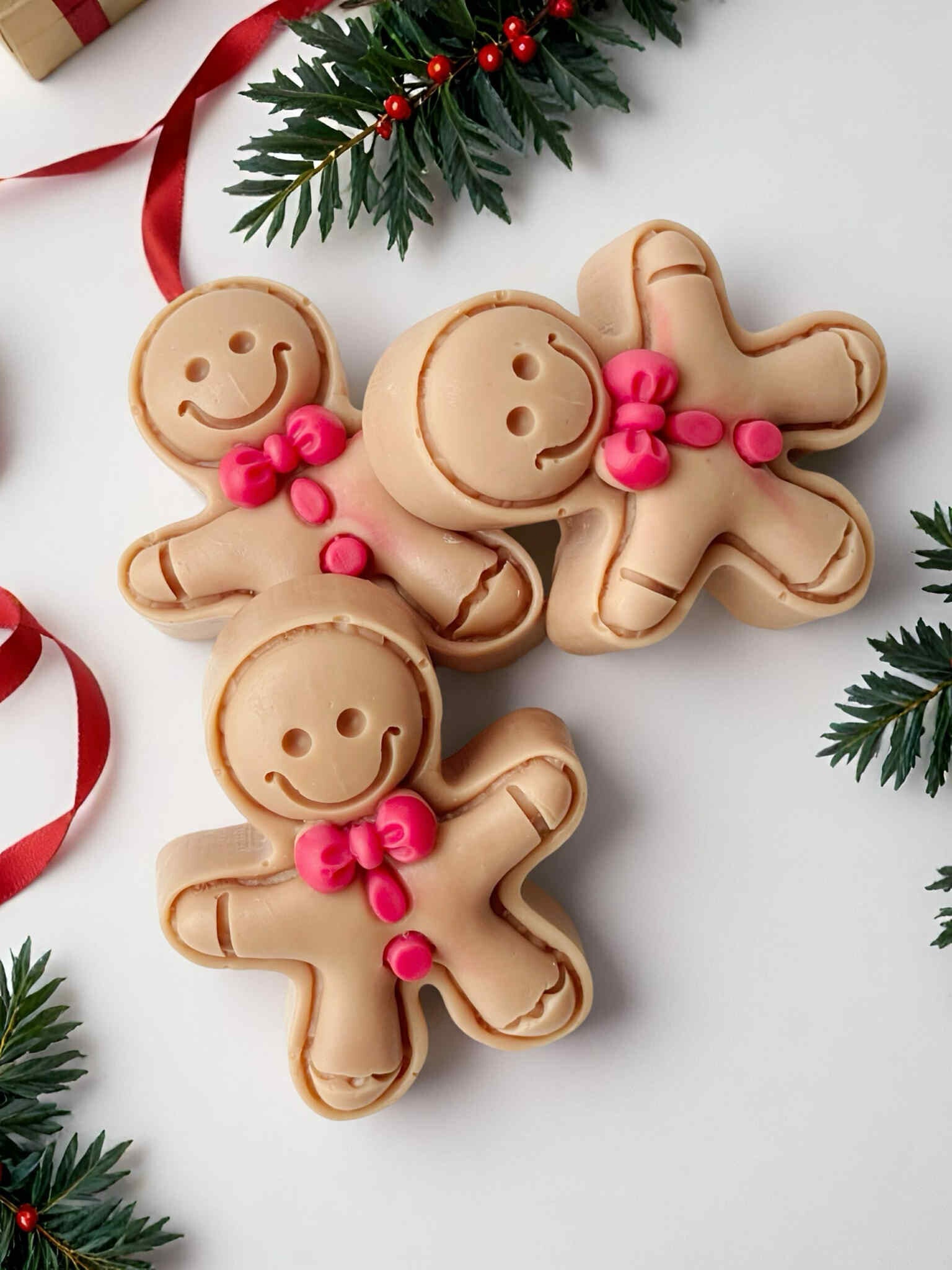 These soy wax melts blend the classic, spicy scent of freshly baked gingerbread men with sweet, buttery sugar cookies, creating a cozy, festive atmosphere.
